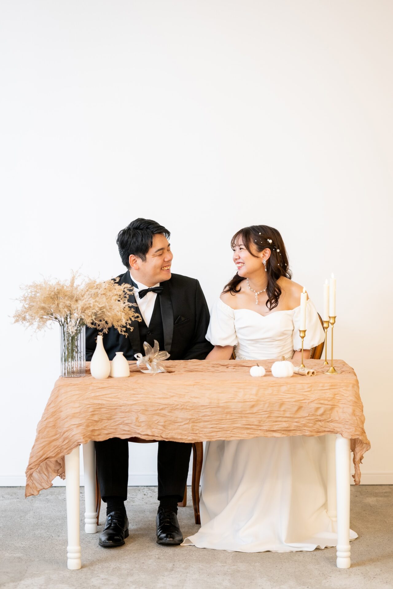 どちらも叶う人気のフォトプランです!スタジオでは、光のバランスや背景にこだわり、まるで映画のワンシーンのようなウェディングフォトを♪