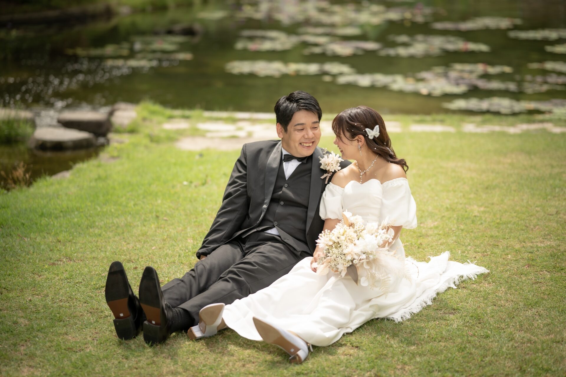 ロケーションでは、自然の光や風に包まれた、柔らかでバチュラルな表情を残します。「スタジオのナチュラルさ」「ロケーションの心地よさ」、お二人をたっぷり詰め込んだウェディングフォトを♡