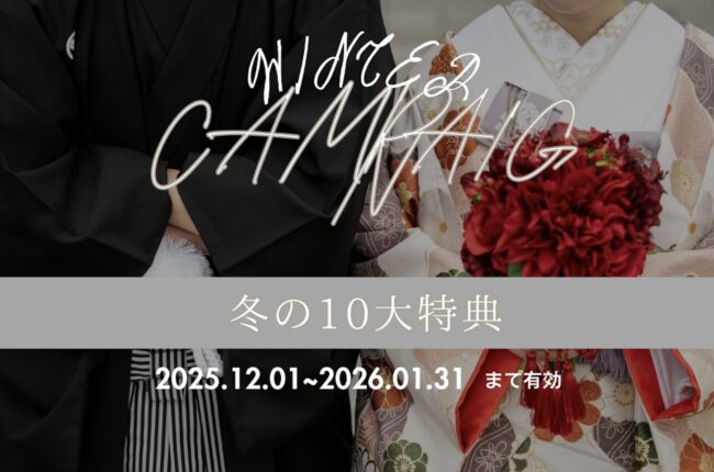 冬の撮影をもっと楽しんでいただけるように✴︎✴︎《10大特典キャンペーン》✴︎✴︎をご用意致しました。12月〜1月のウェディングフォトは、光がやわらかく、空気が澄んでいて、実はとっても写真映