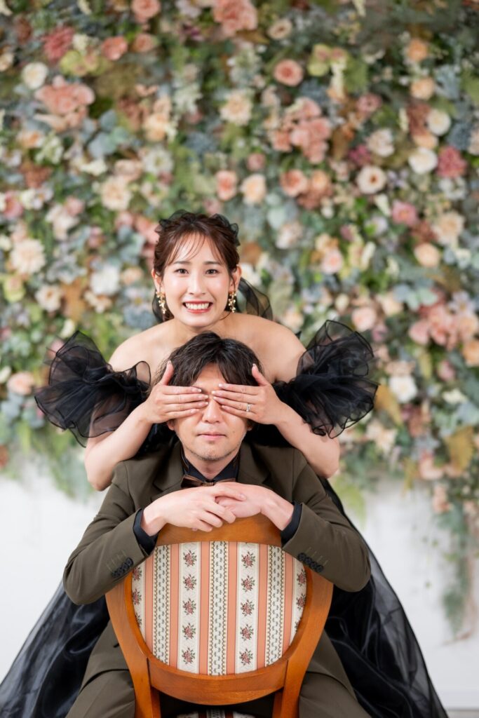 撮影中は、背景の前に立つだけで自然と笑顔が溢れるほどの、優しい空気に包まれた空間です。お二人の距離感を大切にしたナチュラルなカットから、しっかりポーズをとったおしゃれなショットまで幅広く対応できます!