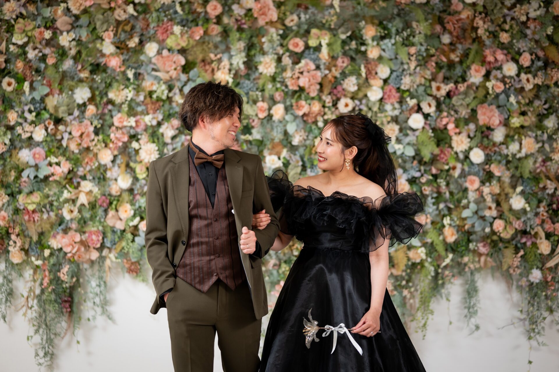 この背景は、和装にもドレスにもどちらにもマッチするのが大きな魅力。白無垢や色打掛の和装フォトでは、花々の繊細な色味が衣装の美しさを際立たせ、ドレスウェディングでは、トレンド感と可愛らしさをプラスしてくれます♪