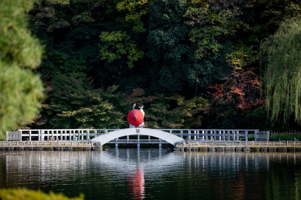 名古屋を代表する日本庭園「徳川園」は、和装ウェディングフォトにぴったりのスポットです。広大な池泉回遊式庭園は、どこを切り取っても絵になる美しく引き立ててくれます。