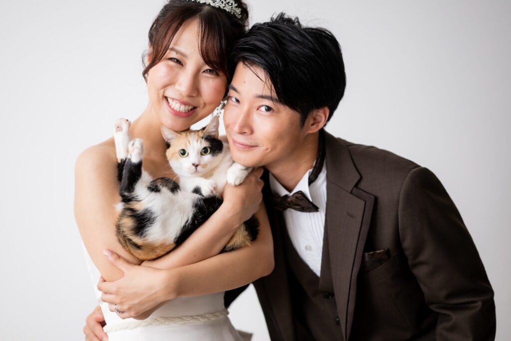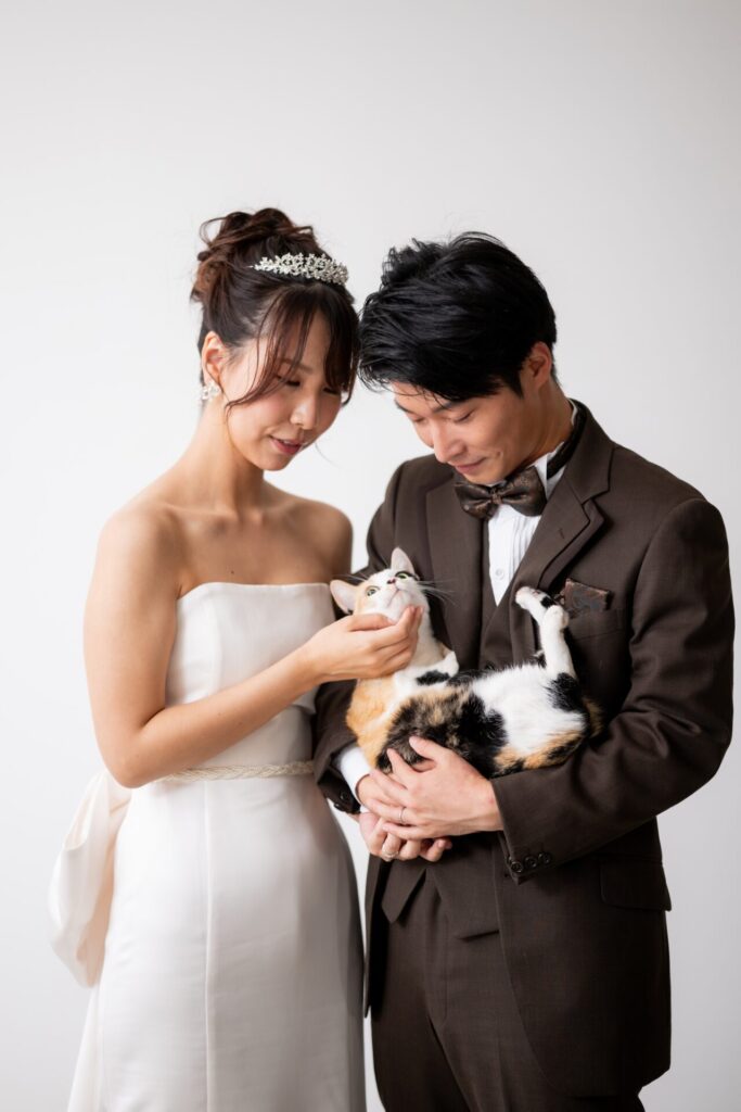 結婚という大切な節目に、ずっと一緒に過ごしてきた大切な家族である猫ちゃんも一緒に撮影を。新郎新婦様にとって、かけがえのない存在である猫ちゃんと過ごす時間をそのまま写真に残すことで、温かい思い出となります。